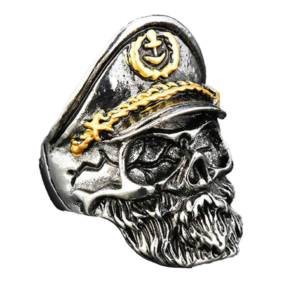 A beautiful steel captain's skull ring is an elegant and original piece of jewelry that is suitable for both men and women. Available in several sizes, it fits any finger and can be worn alone or paired with other jewelry for an even darker look.