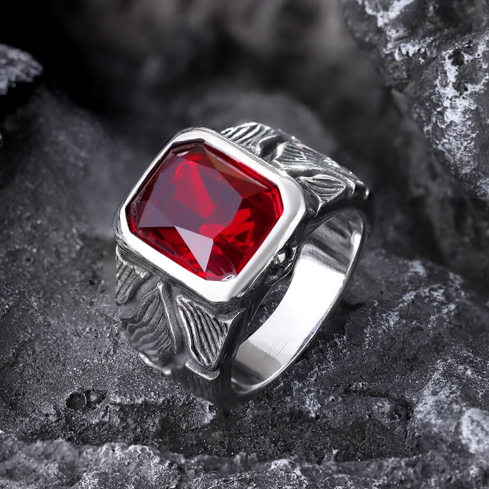The material of this ring is stainless steel and zircon. The ring is made in a retro style, with carved pinstripes on both sides, with a colorful zircon inlaid in the middle, full of Gothic style. Get yours today!